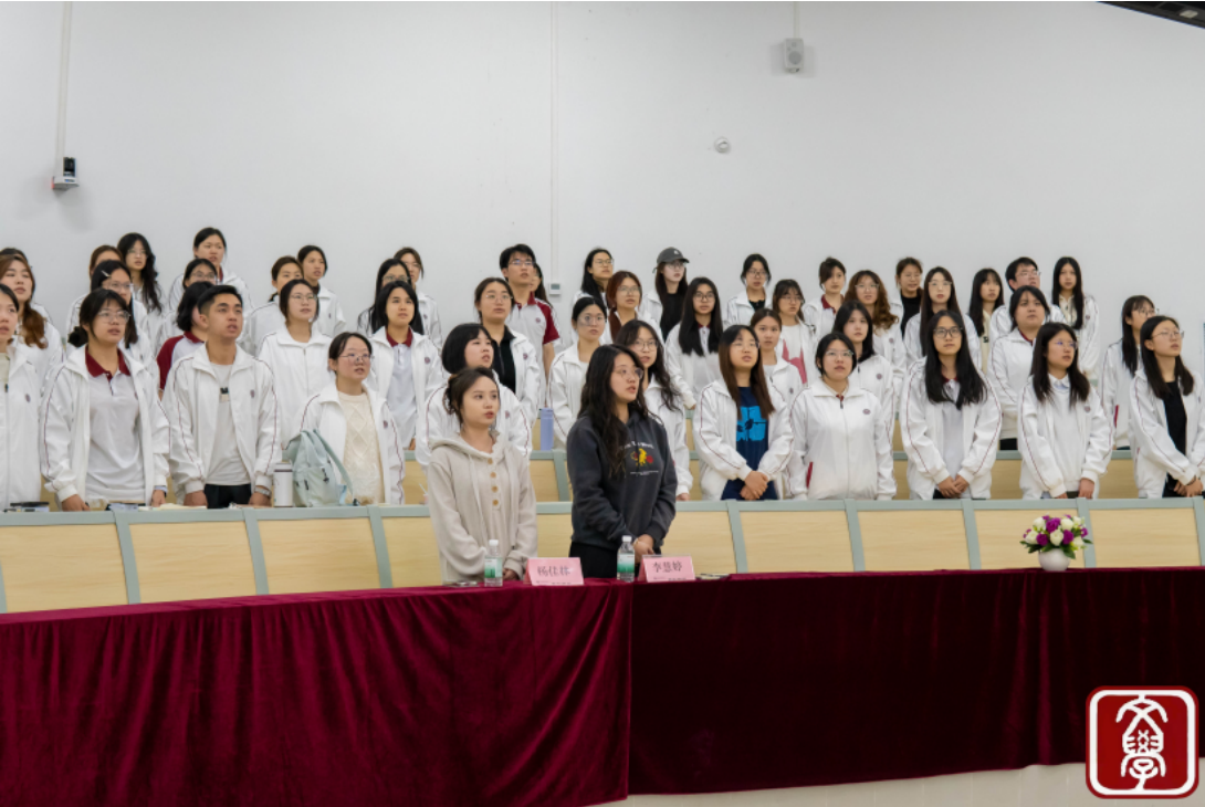 会议伊始,全体起立,奏唱团歌。全体与会者庄严肃立、心潮澎湃,齐声高唱《光荣啊,中国共青团》。嘹亮的歌声唱出了同学们的满腔热血,既是对革命精神的续传承,更是新时代青年担当使命的铿锵誓言。