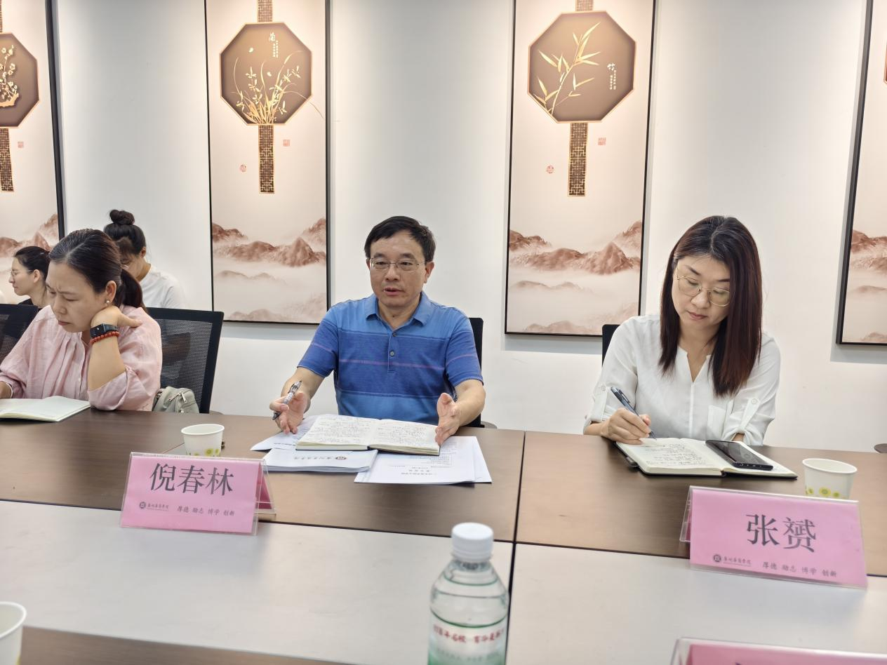 最后,陈少华院长对本次调研会进行总结。他对倪春林主任到访调研表示感谢。他强调,评估工作是提升教育教学质量、推动学院发展的重要契机,必须做到全员参与、责任明确,确保每一项工作都能落到实处。要进一步凝练特色,把握细节,切实将审核评估的指标点落实到每一门课程、每一个培养环节,全力推动学院高质量发展。