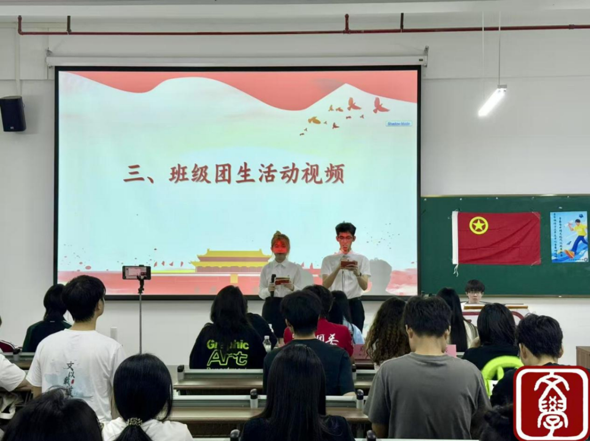 大会第三项议程,观看本月班级团生活动视频。视频生动展现了各班级围绕本月团生主题开展的特色活动,以丰富多彩的形式展现了各班青年的蓬勃朝气。