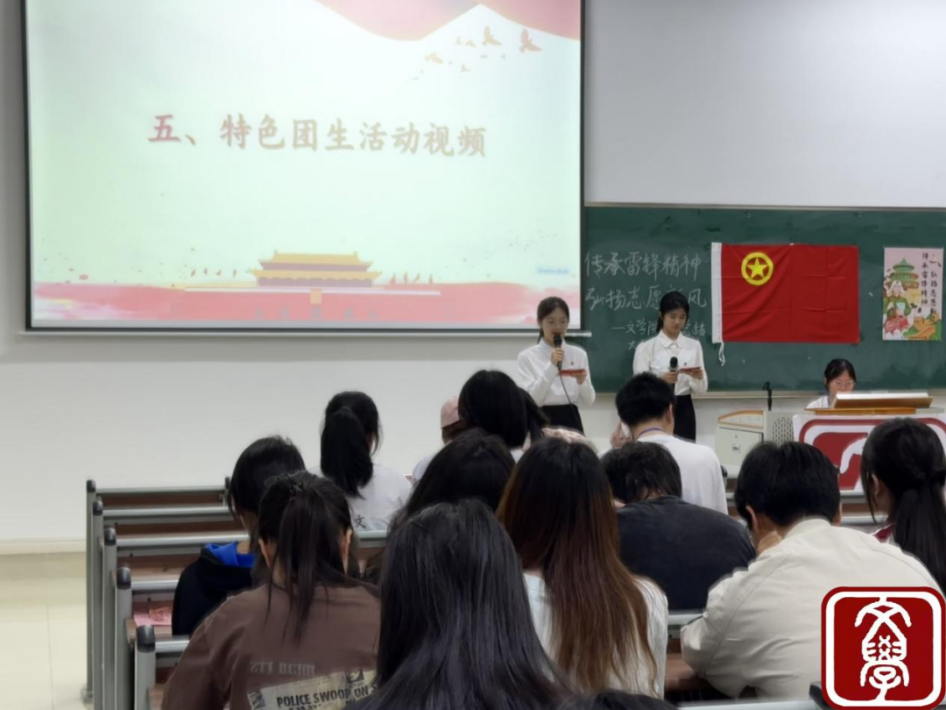 第五项议程播放特色团生活动视频。同学们围绕对雷锋精神的理解,制作了精美视频,表达对雷锋的敬仰。他们还积极投身志愿活动,以实际行动践行雷锋精神,为美好社会贡献力量。