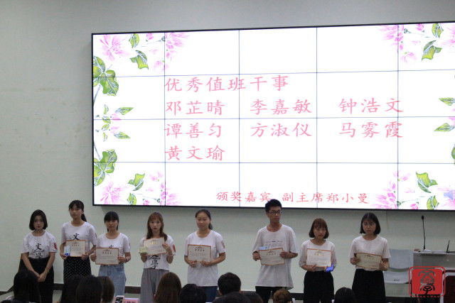 接下来分别由赵益老师和方钰霖,许佳楠以及张梦圆为优秀干部和优秀干事颁发奖状以及奖品。而优秀值班干事的奖项则由李国欣和郑小曼颁发。值得一提的是,每一位获奖者的奖品都是由自己在奖品箱中抽取的,在保持了神秘感的同时也让获奖的同学们感到十分惊喜。