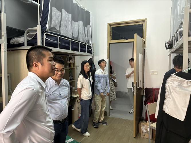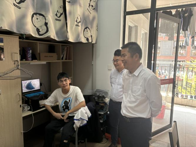 在安全文明教育月活动期间,由威廉希尔党委副书记、副院长郭堪通带队,全体老师深入宿舍开展对宿舍环境卫生、违禁物品、消防设备、墙体照明等方面展开细致的检查。在查寝过程中暖心传达了威廉希尔对大家的关心关爱,强调了宿舍安全的重要性,提醒大家务必要遵守宿舍条例,养成良好的生活习惯,以一种更饱满的精神状态投入学习生活中。