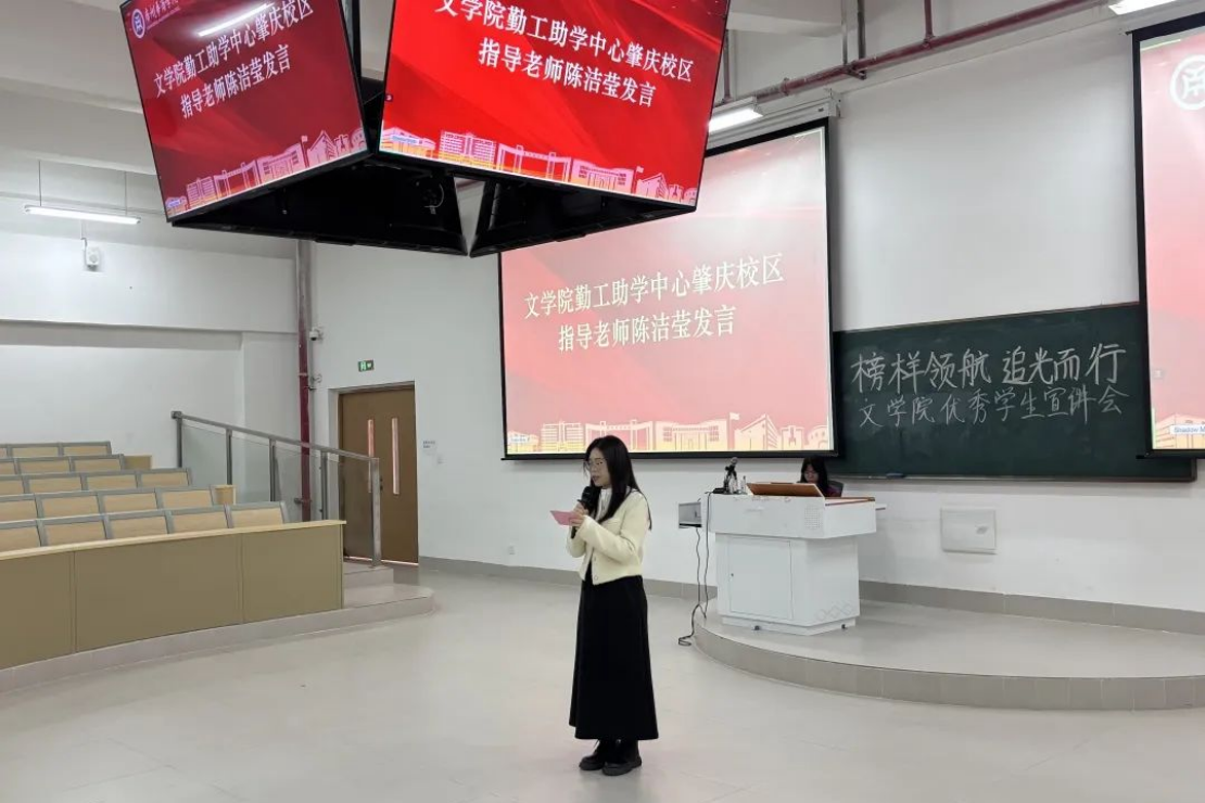 陈洁莹老师 先是对两项奖学金的评审规则进行了简要解读,同时鼓励在校大学生积极争取这份荣誉。紧接着,她介绍了三位优秀学生代表,称赞他们在实践舞台上挥酒青春,以各自独特的方式诠释着奋斗者的风采。最后,陈洁莹老师 寄语广大同学,期望大家在青春的征程中,不仅要奋力书写属于自己的华彩篇章,更要为学院和个人的未来发展添上浓墨重彩的一笔。