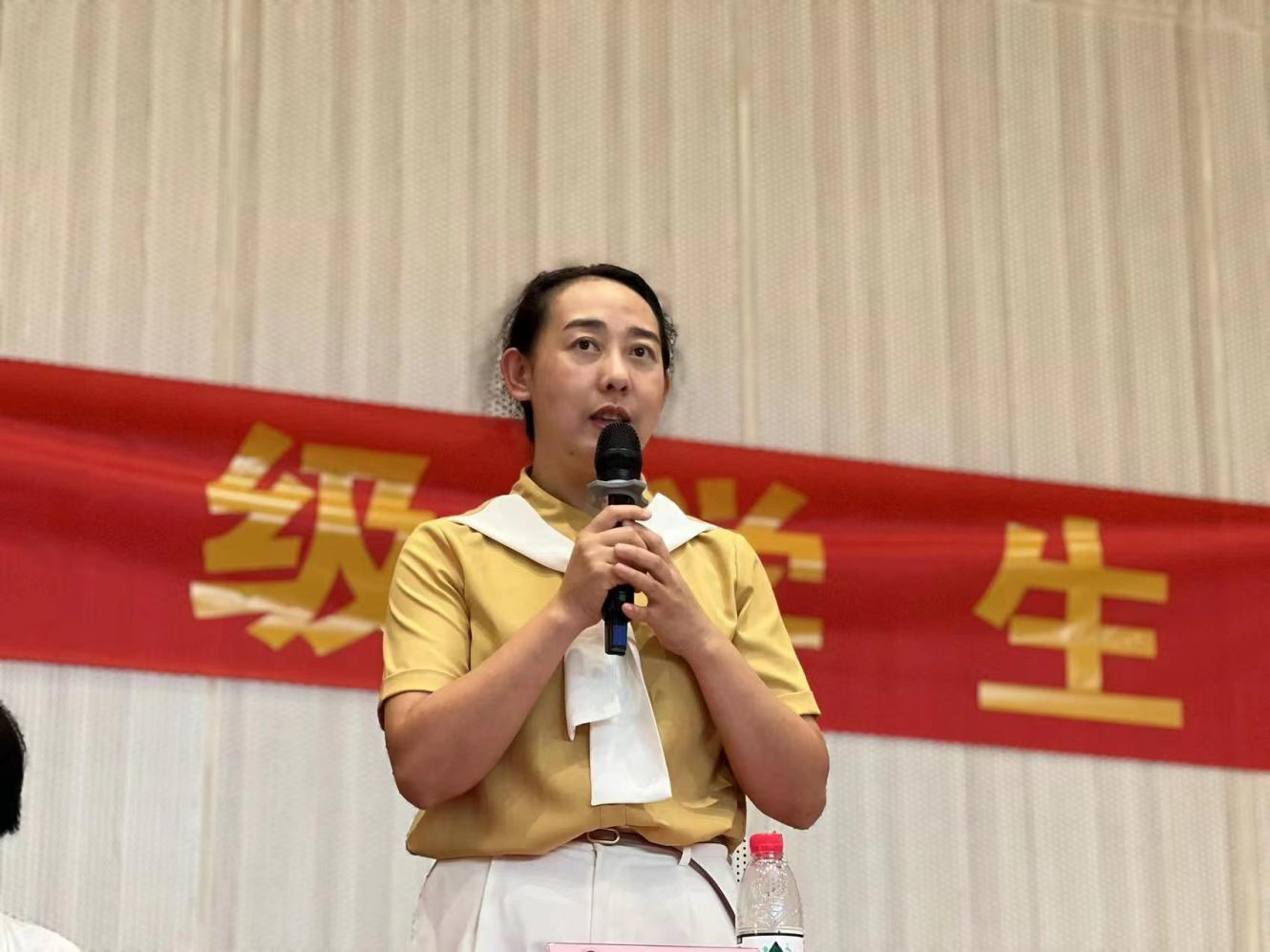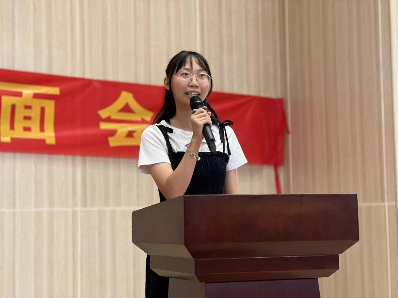 教师代表于丹丹老师发言。她讲述了大学和高中的区别。她强调大学是“一个人的大学”,要主动学习,学会独处,扬长避短。她勉励同学们,大学是新的开始,同学们需努力奋发,自强不息,争做时代新青年,在学习中充实自己。
