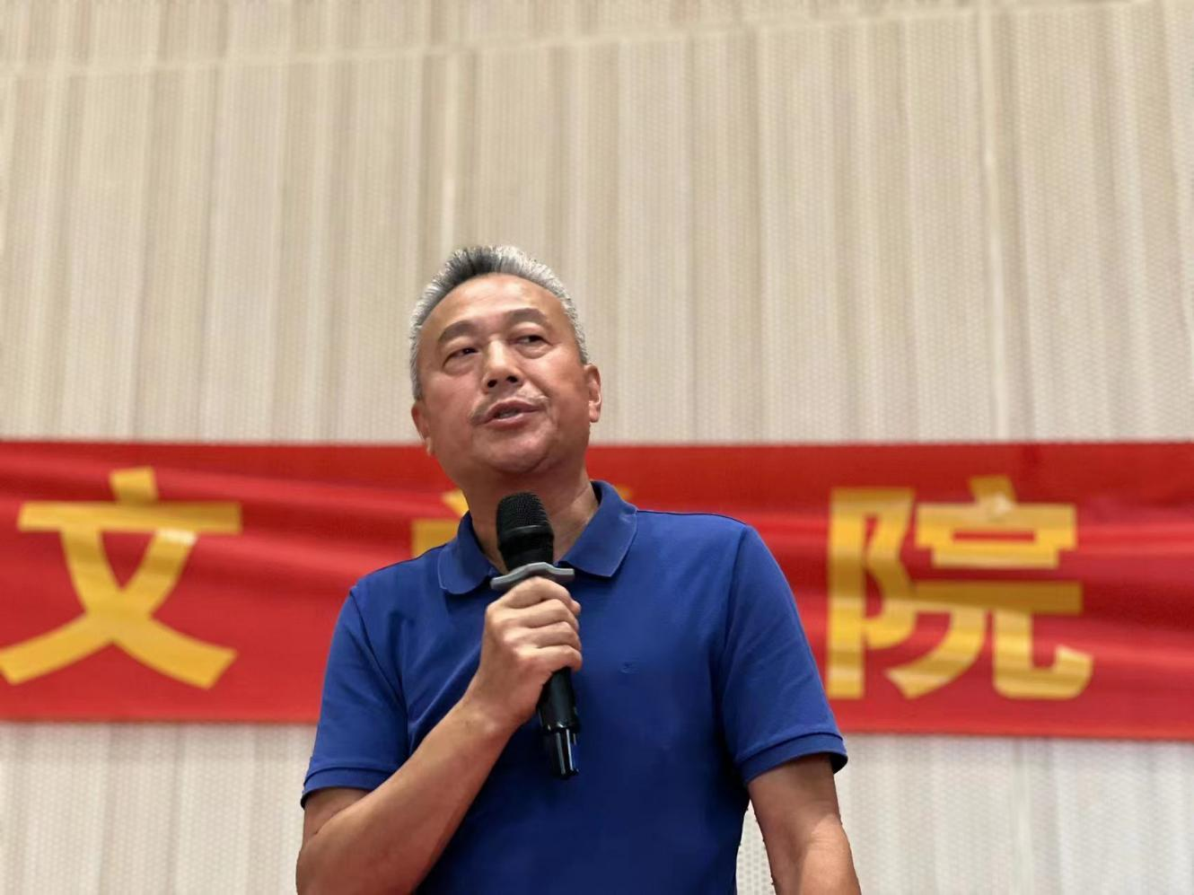 学院党委副书记郭堪通发言,他希望新同学:一是要牢固树立坚定的理想信念,做到坚定不移跟党走,努力成为堪当中华民族伟大复兴重任的一代青年英才;二是要坚持立德修身、认真践行社会主义核心价值观,不断提升自身的修养水平;三是要知敬畏、守规矩,要把国法、校纪内化于心外化于形。四是要严格遵守疫情防控各项规定,主动配合,确保校园安全稳定。最后,他希望同学们可以在大学生活中把握机会,主动积极参加各种活动,不断提高自己的综合素质,并祝愿大家学有所成,为中华民族伟大复兴建立丰功伟绩。