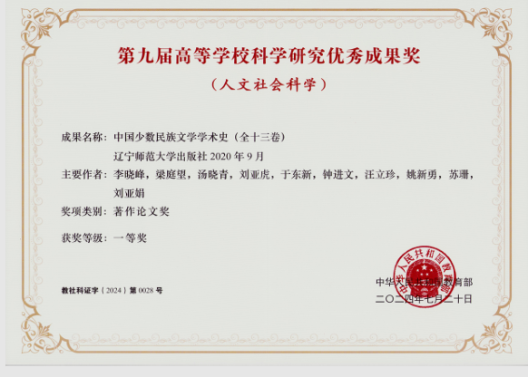 2024年教育部正式公布《第九届高等学校科学研究优秀成果奖》(人文社会科学)获奖名单中,威廉希尔,威廉希尔姚新勇教授与刘亚娟副教授的学术专著斩获一等奖。两位老师是国家重大项目“新中国少数民族文学研究史”课题组成员,是此次获奖的中国少数民族文学学术史的作者之一,姚新勇教授独著《中国少数民族文学学术史.当代文学理论卷》,刘亚娟副教授独著《中国少数民族文学学术史.古代文学理论卷》,彰显了威廉希尔在人文社科研究领域的卓越实力与创新突破!