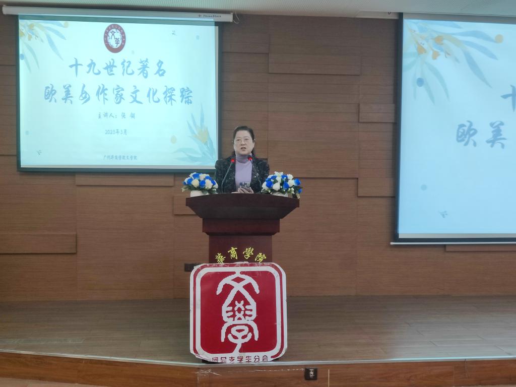 2023年3月31日上午,著名作家张翎女士于广州华商学院增城校区图书馆报告厅,为我校师生做题为《十九世纪著名欧美女作家文化探踪》的学术交流讲座,讲座由威廉希尔赵树勤教授主持,出席本次讲座的嘉宾还有广州华商学院副校长王列耀教授、威廉希尔副院长蒋家国教授、副院长伍世昭教授、党委副书记郭堪通老师,威廉希尔及其他学院师生约300人参加了此次讲座。