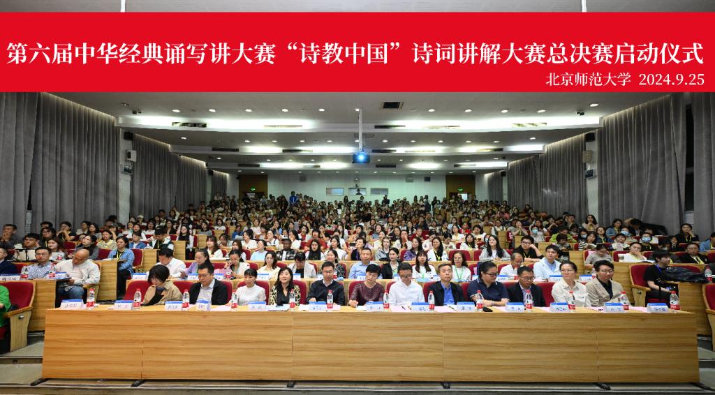 第六届中华经典诵写讲大赛“诗教中国”诗词讲解大赛总决赛于9月25日在北京师范大学正式拉开帷幕。本届赛事由教育部、国家语言文字工作委员会主办,北京师范大学、高等教育出版社共同承办。本届大赛,全国共有40157人报名,参与测评96963次,历经初赛、复赛、半决赛等环节,共选出来自全国的290余名选手参加总决赛。小学教师组、中学教师组、大学教师组、大学生组、留学生组等各组选手将围绕中华经典诗词的课堂教学和讲解展开角逐。相信本届大赛将引领全社会更深入地体悟中华优秀文化内涵,丰富文化思想实践,提升语言文化素养,激发文化自信自强。