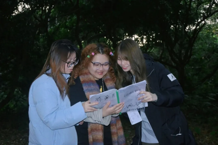 走进 短剧《追蝶》剧组实训 的现场,同学们从理论学习者转变为实践参与者。在拍摄现场,学生们亲眼目睹了剧本从文字到影像的转化过程。在与导演、演员、摄影等各个部门的紧密协作中,同学们真切地感受到了影视创作的复杂与艰辛,也更加明晰了编剧在其中的关键作用。