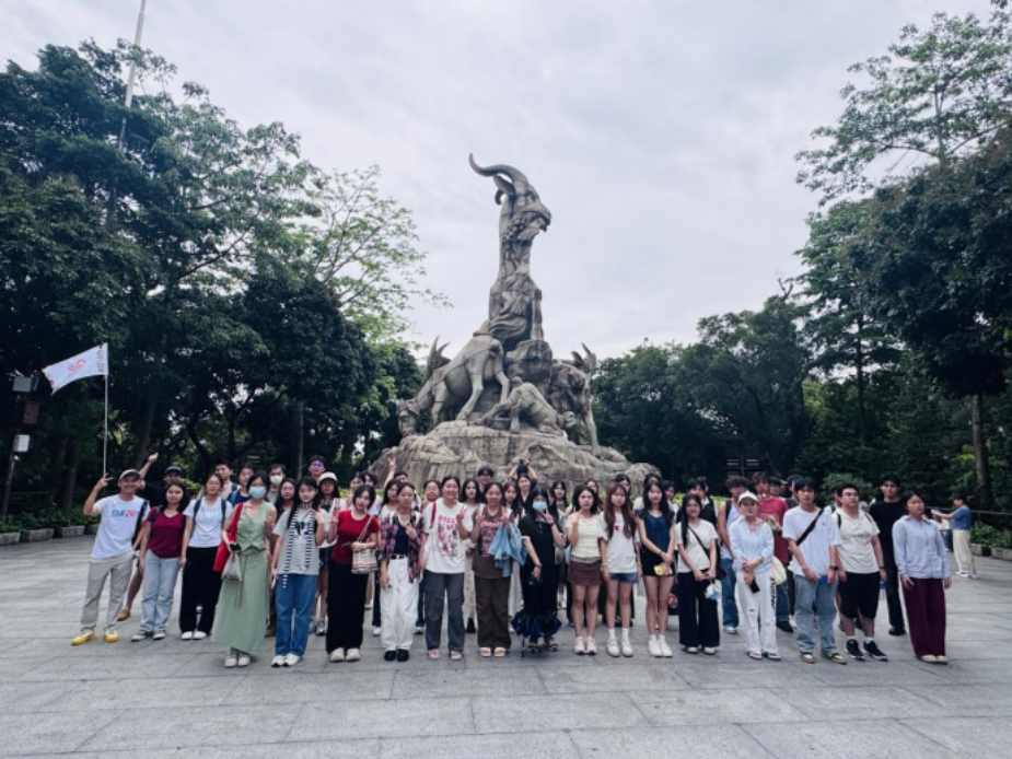 导游向师生们讲述了流传千年的 五羊传说:周夷王时期,五位仙人骑着口衔稻穗的仙羊降临广州,将稻穗赠予百姓,并祝愿此地永无饥荒,随后腾空而去,仙羊则化为石像留在人间。这个传说不仅蕴含着古代先民对富足生活的向往,更象征着广州作为“穗城”的深厚文化底蕴。师生们认真聆听,不时提问,深入探讨传说背后的文化内涵。