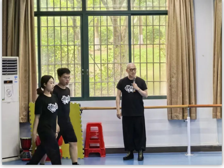 大师课以带领同学们玩游戏,做练习的形式拉开序幕,荔湖剧社主理人黄厚斌、威廉希尔专任教师邹晨也沉浸式参与到课堂中来。 他们与同学肩并肩校准节奏、手把手调整动作。在充满趣味的互动中,亲身示范传递实践课堂的独特魅力,更以平等互动的方式,点燃了“在玩中学”的创新火花。